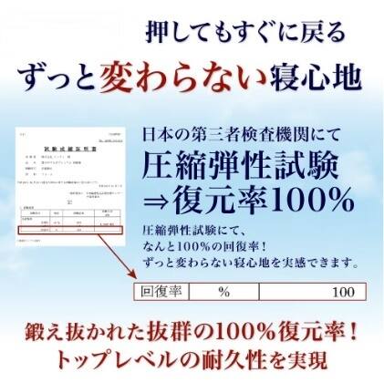 雲のやすらぎプレミアムは圧縮試験の結果、復元率が100%と高く、長期間使用してもへたりにくいマットレスであることが証明されています。