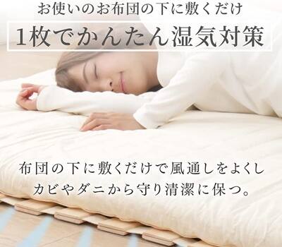湿気が気になる場合は、モットンの下にすのこを敷きましょう。竹製や木製のすのこは通気性が高く、湿気やカビを防ぎます。