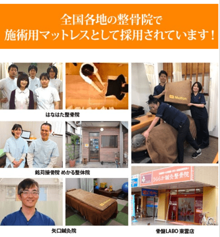モットンを使っている整骨院(整体院)は以下のとおり。